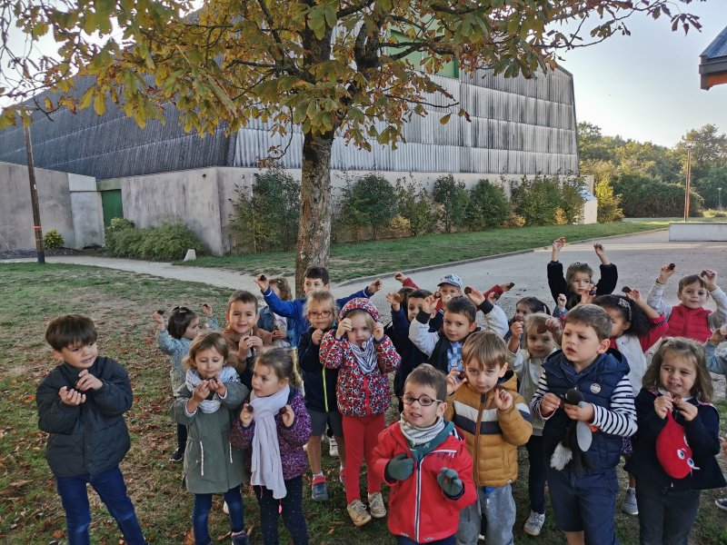 Début octobre, nous sommes sortis de l’école pour notre première promenade « découverte »des alentours de l’école. Nous avons collecté des marrons, bogues, feuilles, noisettes, plumes…nous avons rencontré et discuté avec l’employé communal et nous avons testé le parcours « sportif ». De retour dans la classe, nous avons trié et catégorisé nos récoltes.